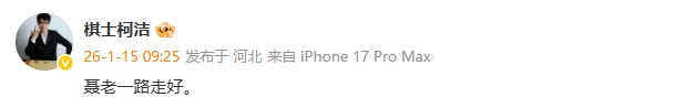 柯洁在社媒发文进行悼念:聂老一路走好。
